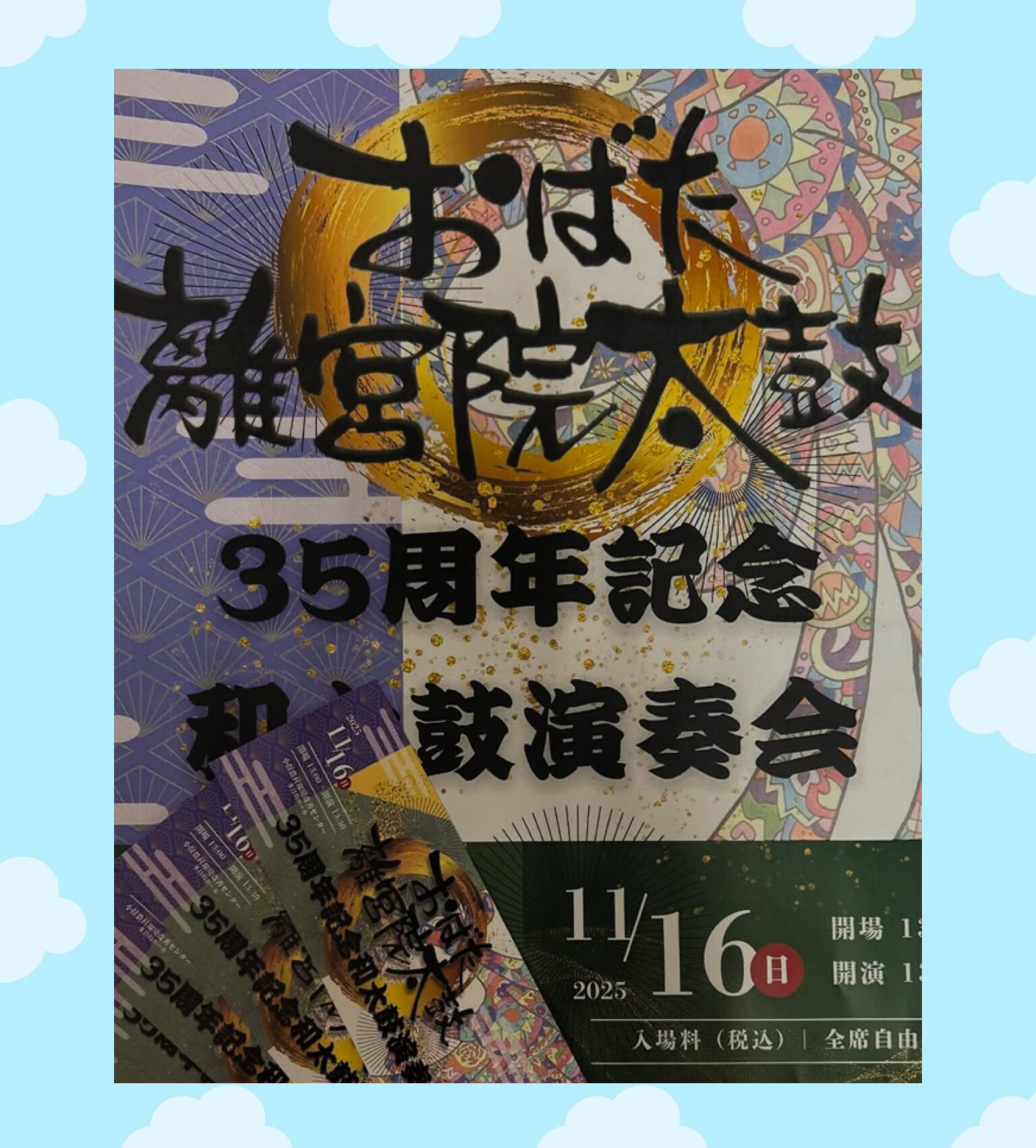 令和7年11月16日(日)おばた離宮院太鼓さんの35周年記念・和太鼓演奏会が開催されます。
